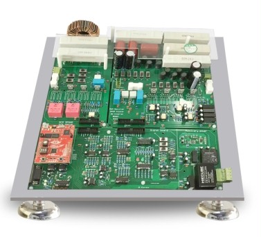 主电路板包括实验的主电路、MOSFET驱动电路、晶闸管(SCR)驱动电路和电流电压采样电路。主控制板发出的控制信号作用于此电路板,完成Buck、Boost、单相半波整流、单相全波整流、方波逆变、SPWM逆变和PWM整流实验,同时通过电压传感器和电流传感器对实验时的电压电流信号进行采样并发送至信号处理板。