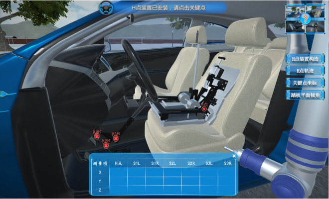 1、H点装置及其应用虚拟实验,三维H点装置是用于检查某一特定座椅位置的装置,用于测定座椅H点和躯干角。目的在于把这些测量值与制造厂的乘坐参考点和设计躯干角进行比较,是进行汽车设计和试验所必须的基础技术标准。国家标准化管理委员会专门针对H点确定程序和H点装置制定了相关技术标准。